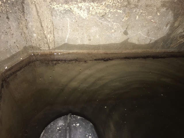 "Vào thời điểm nước bắt đầu dừng cấp là mực nước trong bể cũng bắt đầu hạ xuống. Thời điểm đó bắt đầu xuất hiện một lớp chất nhầy màu đen bám quanh thành bể. Bây giờ, nước được cấp trở lại, mực nước được cấp lại vào bể nhiều hơn, bề mặt nước dâng cao hơn mức nước cũ trước đó nên bây giờ, chất nhầy này vẫn bám chặt dưới mặt nước", anh L. thông tin.