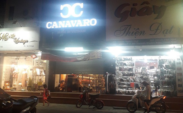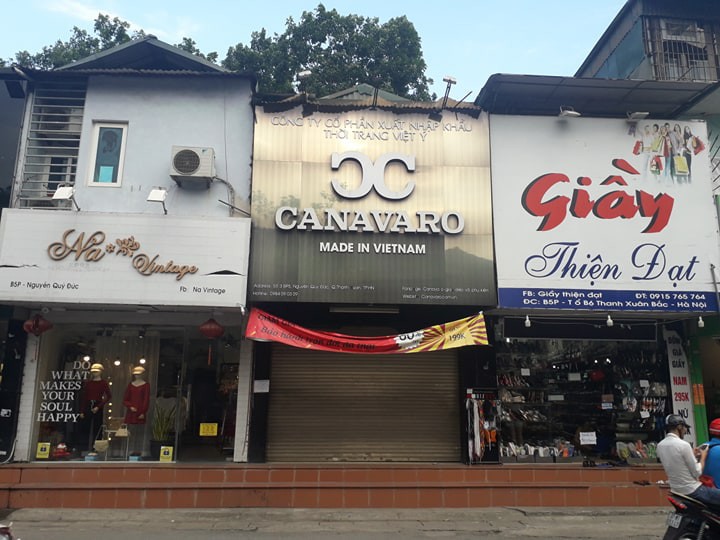 Tối 27/9, shop giày dép CANAVARO nằm trên đường Nguyễn Qúy Đức (phường Thanh Xuân Bắc, quận Thanh Xuân, Hà Nội) đã "hé cửa" nhưng không bán hàng.