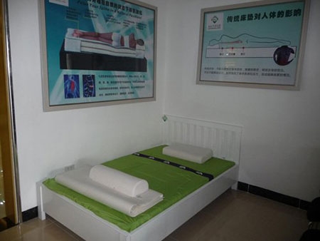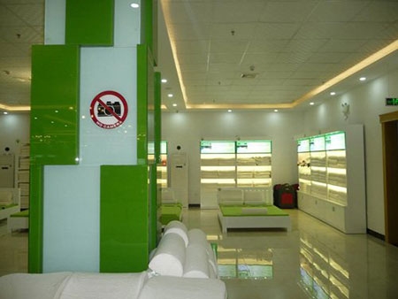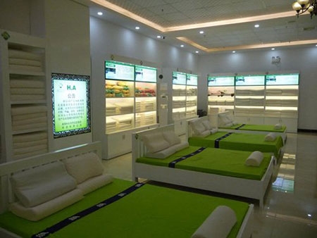 Showroom bán hàng chăn ga gối nệm với bảng hiệu chữ Trung Quốc (ảnh: Đình Thiên) |