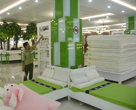 Chăn ga gối nệm được quảng cáo sản xuất từ cao su thiên nhiên nhưng có giá khá rẻ chỉ dưới 1 triệu đồng (ảnh Đình Thiên) |