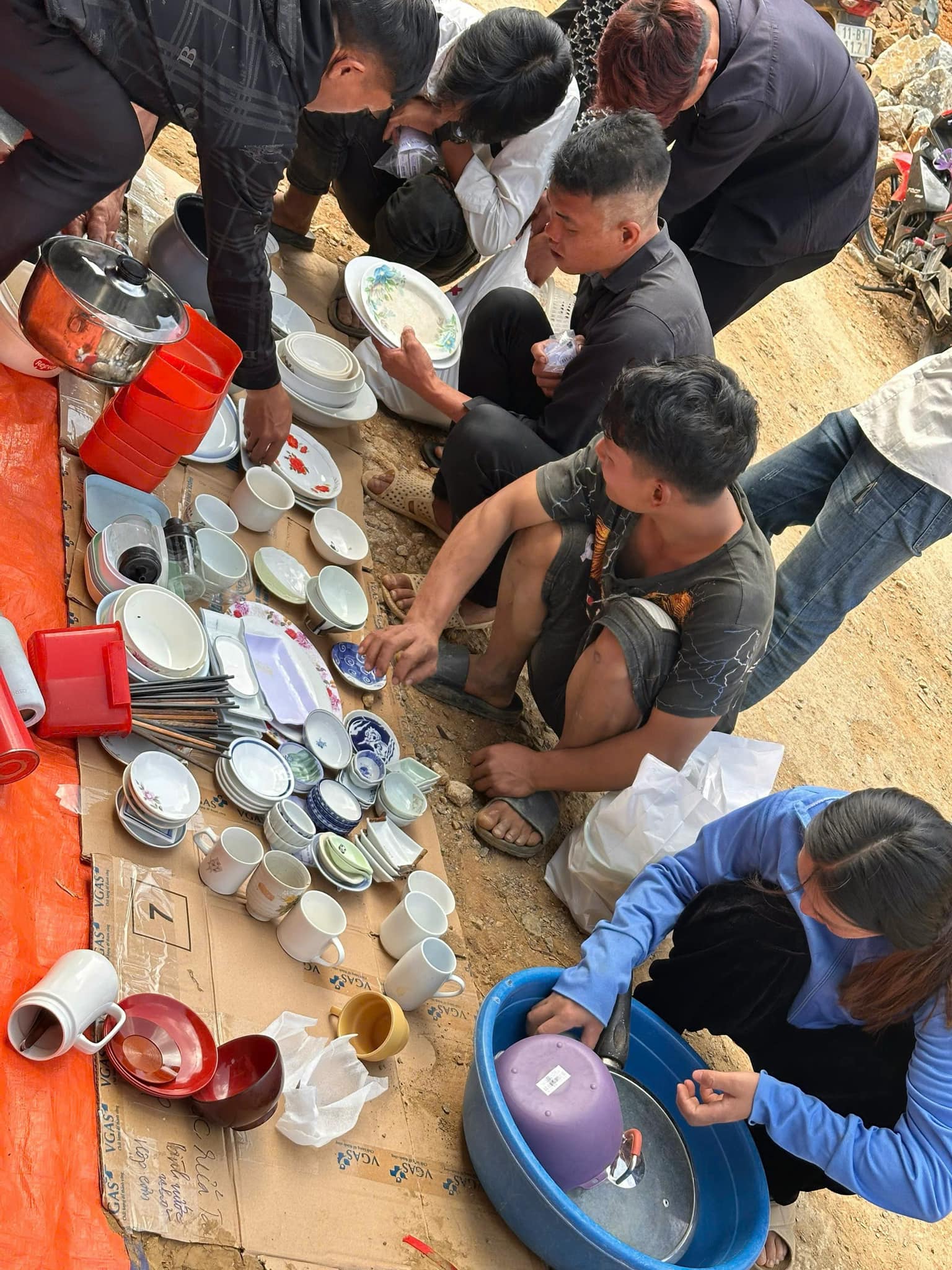 Kèm theo đó là hình ảnh bà con ngồi lựa những đồ dùng sinh hoạt mà gia đình mình cần dùng. Mỗi người chia nhau vài chiếc bát, cái địa hay 1-2 chiếc xoong, chảo, chậu nhựa, nồi cơm điện...