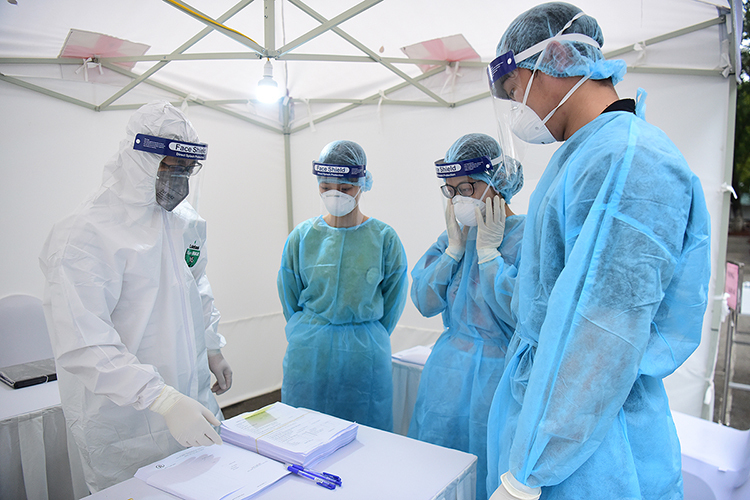 Nhân viên y tế tại trạm xét nghiệm nhanh nCoV tại Hà Nội. Ảnh: Giang Huy