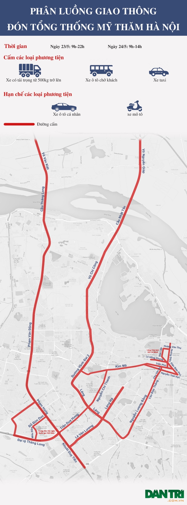 23/05/2016 14:17Sơ đồ phương án cấm đường dịp Hà Nội đón Tổng thống Barack Obama