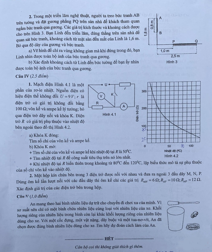 Theo báo cáo của hội đồng ra đề thi, trong đề thi môn vật lý chuyên, tại câu IV, do sơ xuất trong khâu soạn thảo đã ghi nhầm điểm 3,0 thành 2,5 điểm.