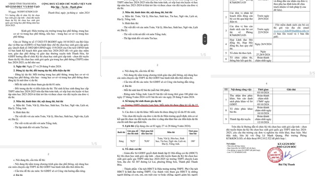 Trong văn bản báo cáo Chủ tịch UBND tỉnh Thanh Hóa thể hiện ngày 24-8, Trường THPT chuyên Lam Sơn có kế hoạch tổ chức kỳ thi, đến ngày 28-8, Sở GD-ĐT tỉnh Thanh Hóa có thông báo gửi các trường trên địa bàn tỉnh hướng dẫn tổ chức kỳ thi chọn học sinh giỏi cấp tỉnh, chọn đội tuyển tham dự kỳ thi chọn học sinh giỏi quốc gia THPT năm học 2024-2025.