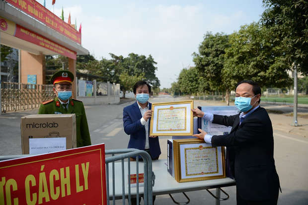 Tại buổi trao tặng, Phó Giám đốc Sở GDĐT Nguyễn Quang Tuấn đã biểu dương tinh thần trách nhiệm cao của đội ngũ CBGV-NV trường Tiểu học Xuân Phương đang thực hiện nhiệm vụ trong khu vực cách ly và mong GV, HS nhà trường yên tâm, thực hiện tốt công tác cách ly theo quy định, phối hợp tổ chức tốt các hoạt động trong khu cách ly để góp phần phòng, chống dịch Covid-19.