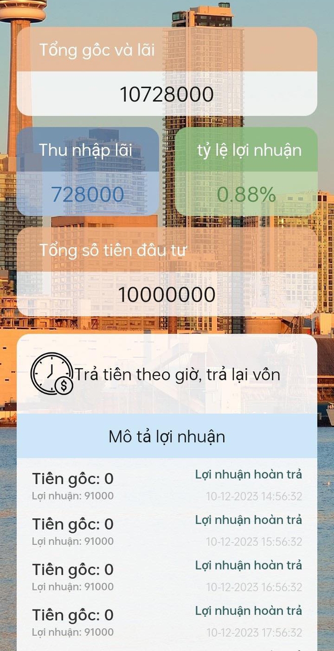 Theo chia sẻ của các nhà đầu tư, số tiền đầu tư gửi vào đều từ vài triệu cho đến trăm triệu và thậm chí là hàng tỷ đồng. Càng những người chơi lâu, số tiền càng lớn.