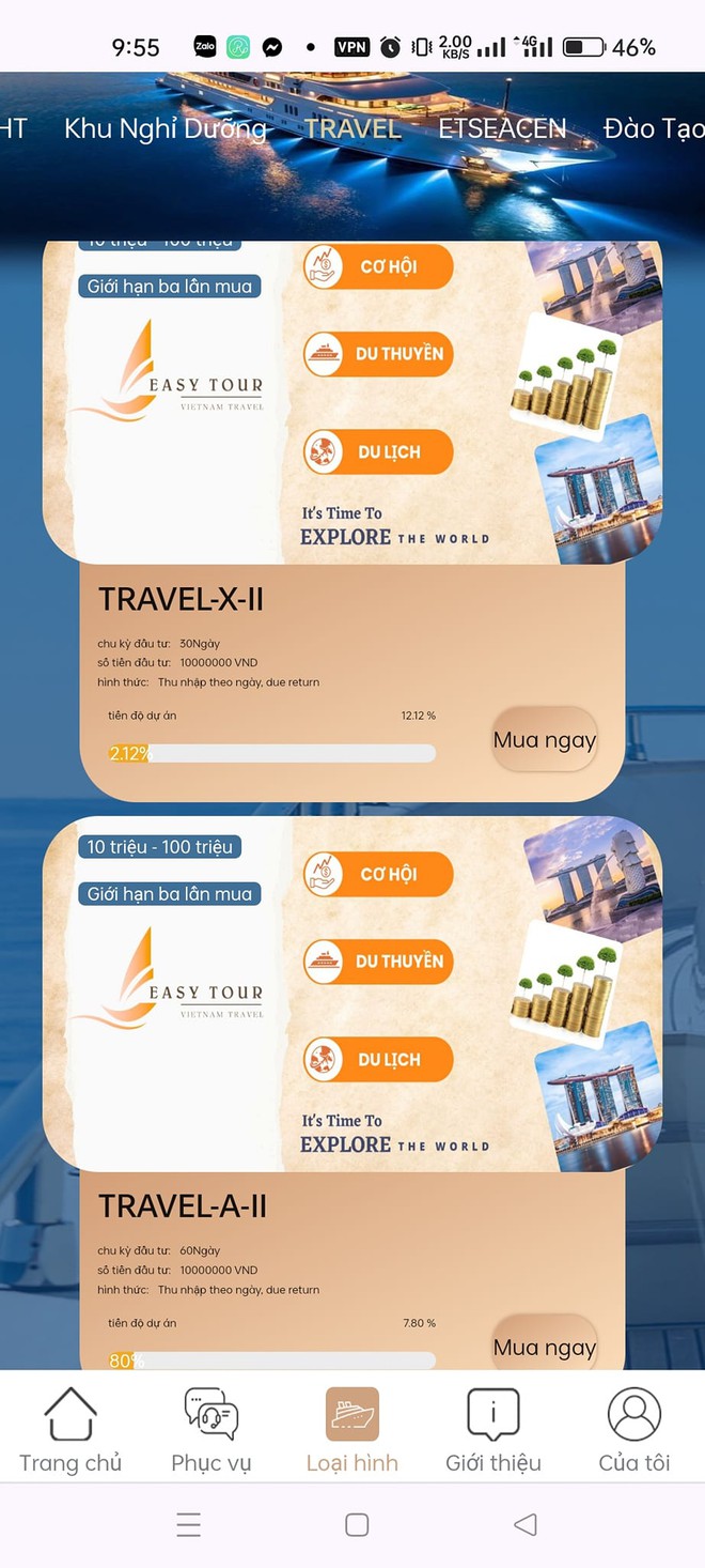 Chị Huyền Trang (Q.Bắc Từ Liêm, Hà Nội) - một trong những nạn nhân của ứng dụng đầu tư Easy Tour - đã kể về quá trình "đầu tư" của mình: "Mình có chị gái tham gia rồi mời vào. Mình vào được 124 ngày, lúc đầu mình có đầu tư 1 tháng sau đó rút về và không đầu tư nữa mà chỉ theo dõi trên nhóm thôi. Lần đầu đầu tư mình bỏ 10 triệu và lãi được 2,2 triệu đồng. Ngày 30/12 vừa rồi mình có vào gói 'ET tiết kiệm' với số tiền 4 triệu đồng, sau đó 3 ngày mình ra rút thì tiền không về tài khoản được nữa và đến trưa hôm qua là sập app, xóa luôn nhóm.
