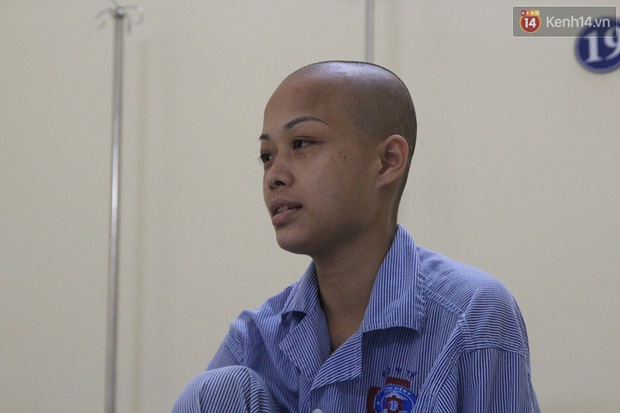 Chỉ khi có người gọi "Thanh ơi, có người đến thăm kìa!", chị Thanh mới cố ngoái người ra nhưng không thể ngồi dậy do vừa truyền hóa chất được vài tiếng.