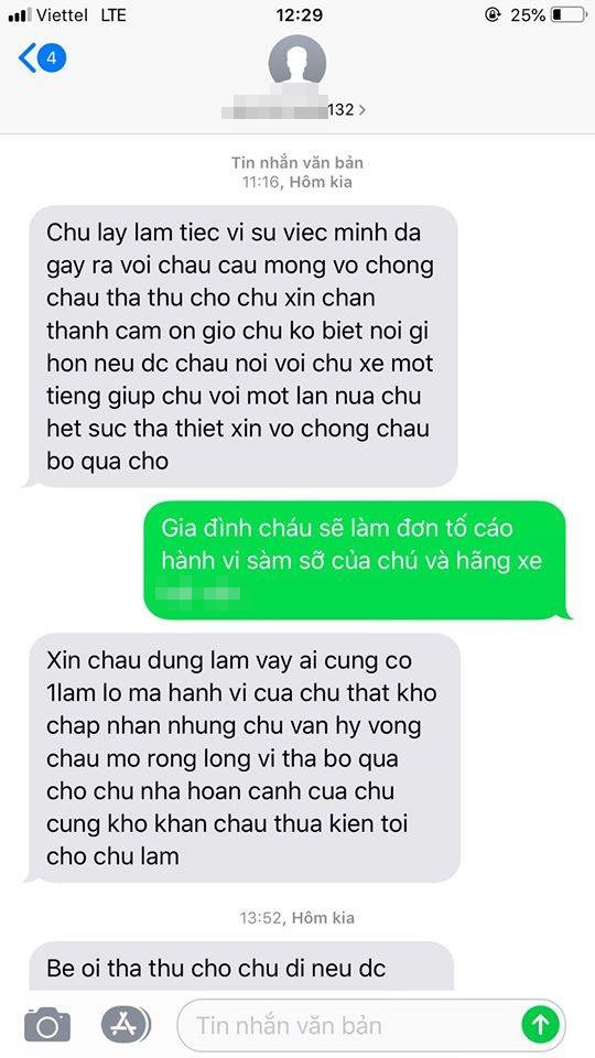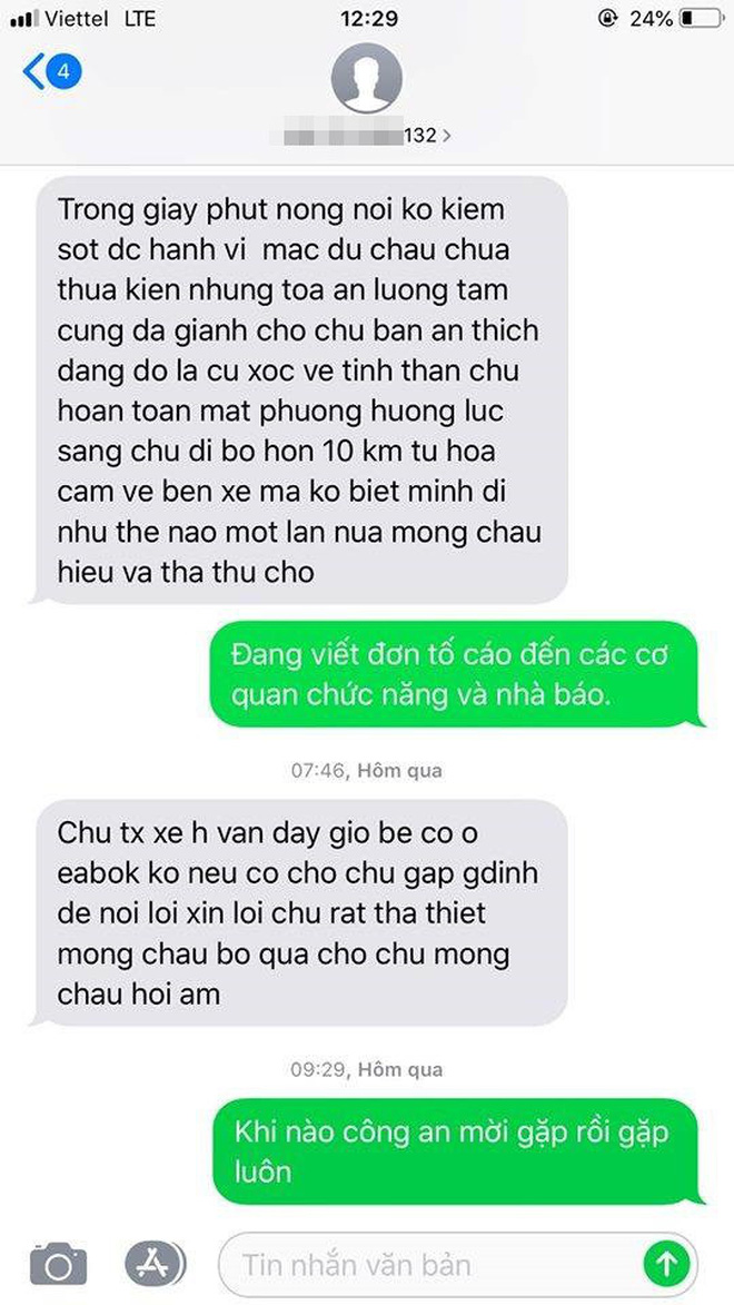 Khi về nhà, lái xe lại thay đổi thái độ, nhắn tin xin lỗi nạn nhân với vẻ khẩn khoản, tha thiết.