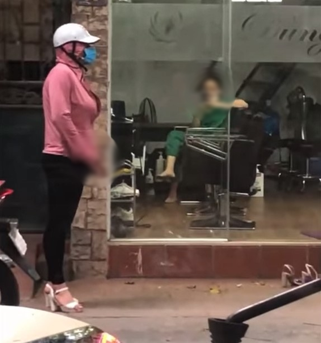 Trong đoạn clip, người đàn ông trong bộ trang phục phụ nữ gồm áo chống nắng màu hồng, quần skinny, chân đi guốc cao, đeo khẩu trang kín mít đứng giữa đường trong bộ dạng đáng ngờ. Mặc cho thời điểm này có rất đông phương tiện qua lại, vị trí đứng lại ngay trước mặt một phụ nữ đang ngồi trong một nhà dân, người đàn ông vẫn vô tư dùng tay thực hiện hành vi khiến tất cả sốc nặng.