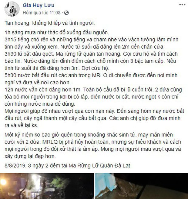 Mới đây, một tài khoản Facebook có tên Gia Huy Lưu đã đăng tải một loạt video và hình ảnh tình hình ngập lũ vào đầu ngày 8/8 vừa qua tại KDL Ma Rừng Lữ Quán (thôn Đa Nghịt, xã Lát, huyện Lạc Dương, tỉnh Lâm Đồng) – vốn là điểm đến rất nổi tiếng trên bản đồ du lịch Đà Lạt. Bài đăng nhanh chóng được nhiều fanpage chia sẻ, nhận được sự quan tâm lớn từ cộng đồng mạng.