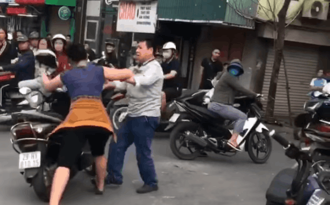 Người phụ nữ trong clip này có thân hình khá cao to, đứng giữa đường dùng một tay túm cổ áo người đàn ông, một tay cầm mũ bảo hiểm và lớn tiếng quát nạt, mắng chửi. Chẳng những tỏ ra hung hăng, liên tục áp sát và giằng co, người phụ nữ này còn chạy lòng vòng để phân bua, giải thích về việc va chạm với chiếc xe đạp điện.