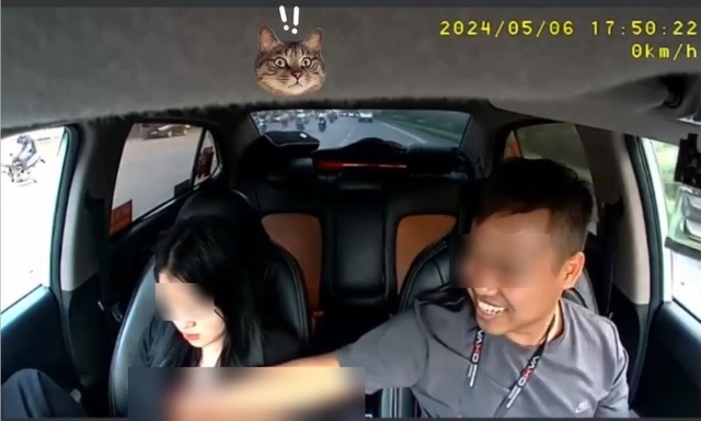 Người này liên tục có cử chỉ thân mật với người phụ nữ ngồi kế bên. Có lúc, hành khách nữ còn nhào sang vị trí lái xe, khiến tài xế "bận rộn" mà không tập trung vào việc nhìn đường.