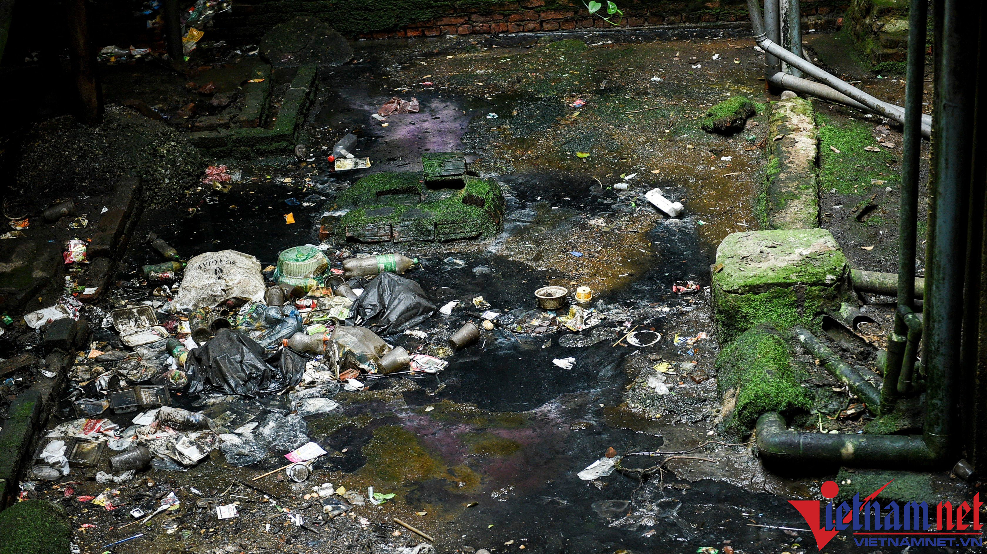 Khoảng giếng trời chung của khu tập thể cũng được các hộ dân xây trụ đỡ để đua diện tích sử dụng ra không gian bên ngoài. Hiện tại, khu vực này biến thành nơi xả nước thải, rác thải, bốc mùi xú uế, mất vệ sinh, tiềm ẩn nguy cơ gây dịch bệnh.