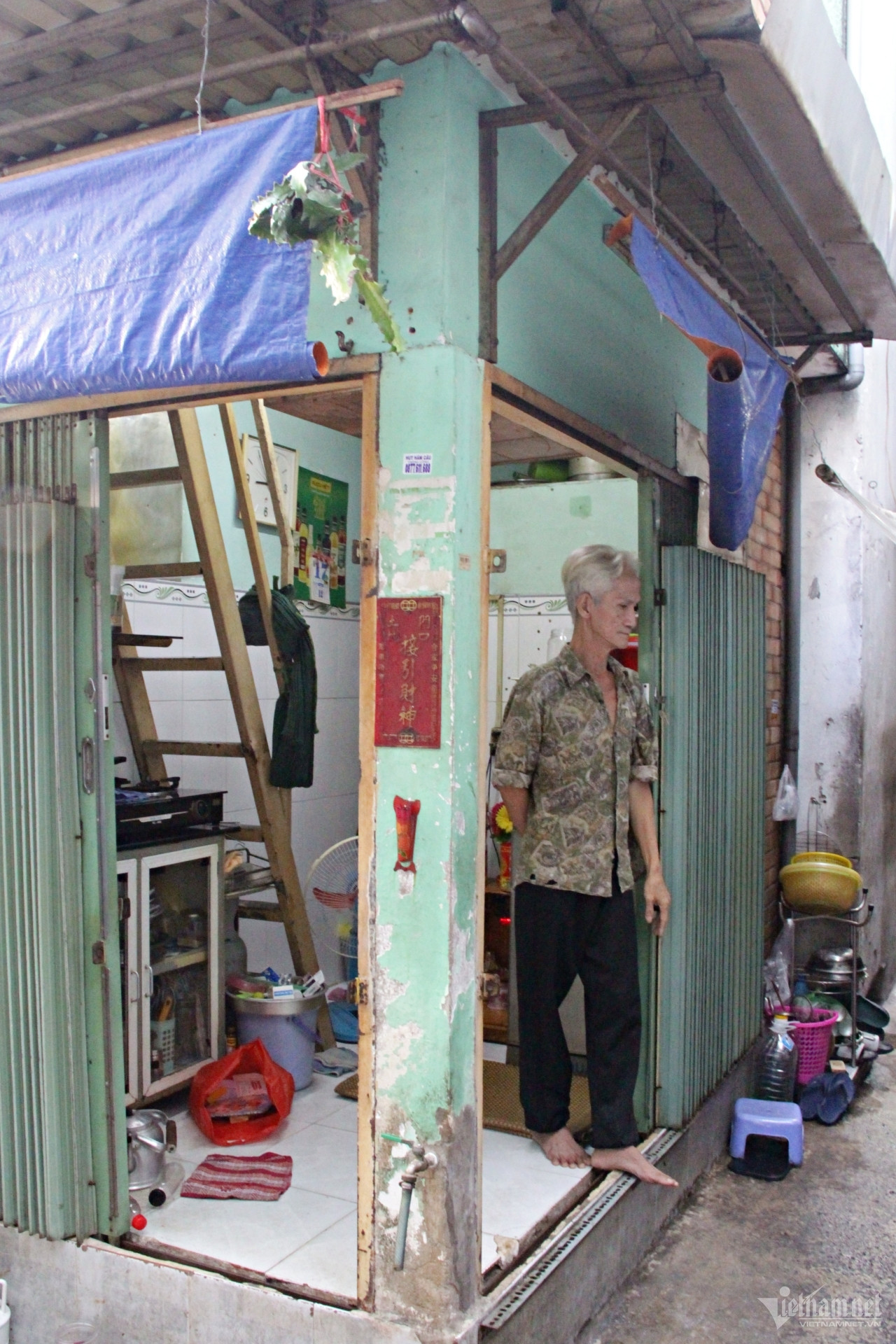 Bà và chị gái mua căn nhà rộng khoảng 5m2 bên trong khu dân cư Cầu Ông Lãnh cách đây gần 20 năm với giá hơn 20 lượng vàng. Căn nhà chật chội đến nỗi bà không thể làm phòng vệ sinh ở tầng dưới.