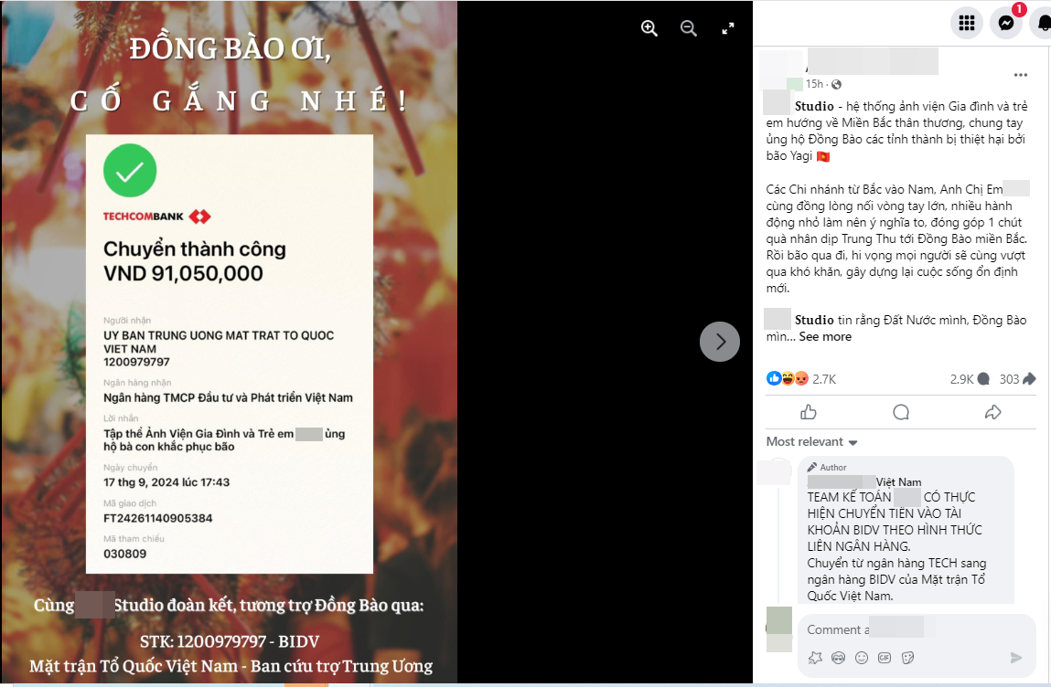 Tuy nhiên, mới đây, một tiệm ảnh viện lớn nhất nhì Hà Nội đã bất ngờ bị cư dân mạng "bóc phốt", cho rằng đã photoshop giao dịch chuyển khoản ủng hộ để "phông bạt" trên MXH.