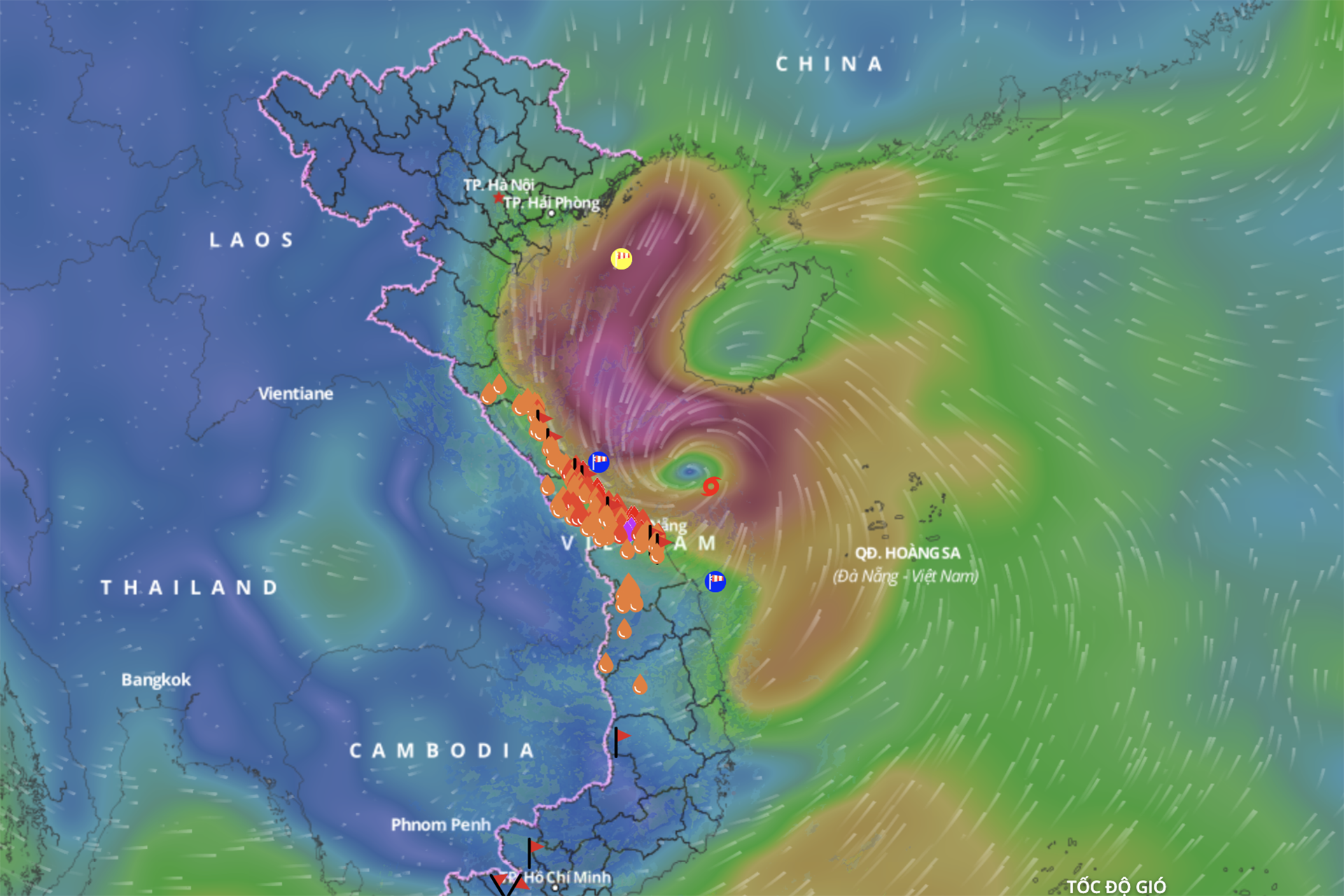 Ông Mai Văn Khiêm, Giám đốc Trung tâm Dự báo khí tượng thủy văn quốc gia cho biết, hồi 7h cùng ngày, vị trí tâm bão cách Đà Nẵng 75km, sức gió cấp 9 -10, giật cấp 12, di chuyển theo hướng Tây, tốc độ 20km/h. Do tác động của bão số 6 đã ghi nhận gió cấp 8, giật cấp 10 tại đảo Cồn Cỏ (Quảng Trị)