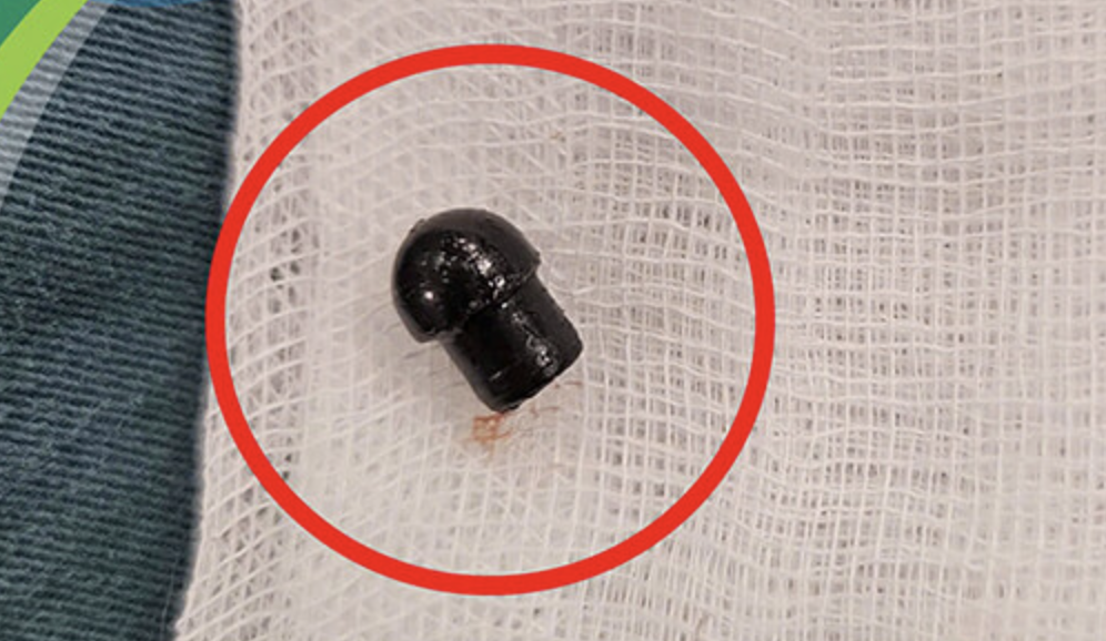 Bệnh nhi được các bác sĩ điều trị tích cực và nội soi cấp cứu tại giường để gắp dị vật đường thở. Dị vật được gắp ra là đầu bút bi màu đen, có kích thước khoảng 0,5 x 0,8 cm, che lấp 70% phế quản gốc phải. Niêm mạc đường thở hai bên của trẻ phù nề, trong lòng phế quản nhiều dịch nhầy.