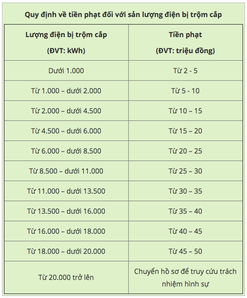 Tuy nhiên, theo ông Lê Quang Đức, để giải quyết triệt để tình trạng trộm cắp điện, ngành Điện còn gặp nhiều khó khăn. Trong đó, nguyên nhân từ việc truy thu sản lượng điện bị mất trộm và xử phạt bằng tiền hiện nay (thấp nhất 2 triệu đồng, cao nhất 50 triệu đồng) chưa đủ sức răn đe. Riêng hành vi trộm cắp trên 20.000 kWh có thể bị xử lý hình sự, nhưng việc thực hiện giám định tư pháp, xác định thời gian, số lượng điện năng bị mất còn nhiều vướng mắc. “Nên chăng, cần áp dụng thêm các hình thức phạt bổ sung như, gửi tên người vi phạm về chính quyền địa phương hoặc thông báo trên các phương tiện thông tin đại chúng, trên loa truyền thanh của xã phường”, ông Đức chia sẻ.