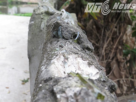 | Bờ tường cắm mảnh chai nơi ông Khá trèo qua bị thương - Ảnh MK |