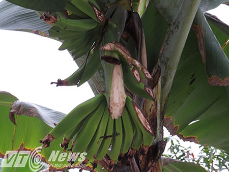 | Trong cơn say, ông Khá chém bay cả buồng chuối non trước nhà - Ảnh MK |
