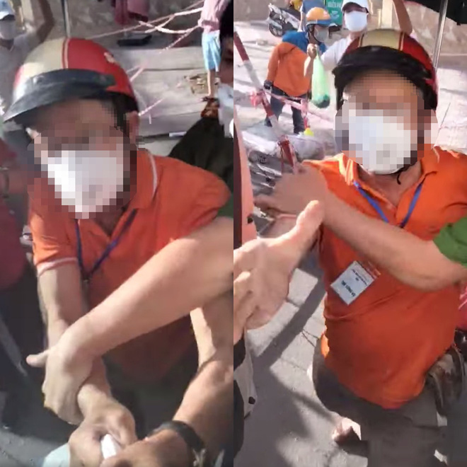 Trong lúc đôi co, bác bảo vệ trực chốt yêu cầu nam thanh niên xuống xe nên đã mạnh tay kéo áo anh và vô tình làm rách. "Đó mọi người thấy không, hung dữ nè. Đó đánh em nè mọi người thấy chưa, đánh tình nguyện viên nè, xé áo em nè mọi người".