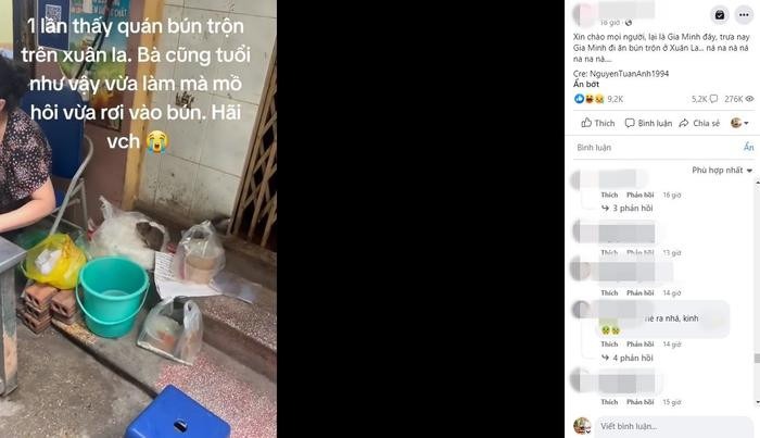 Ngoài ra, theo người đăng tải đoạn clip thì người bán vừa làm bún vừa để mồ hôi rơi vào bún.