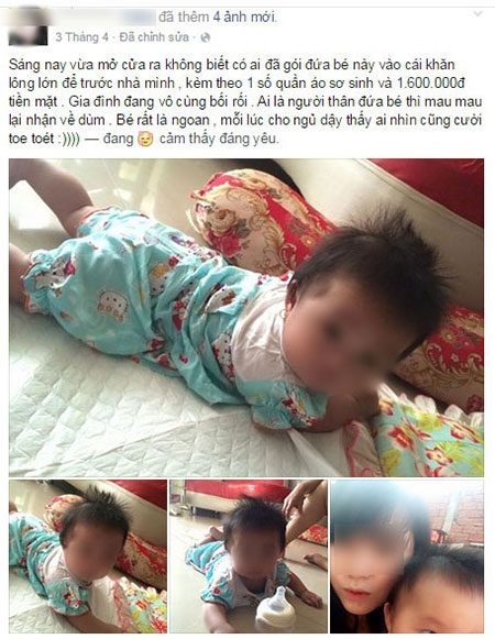 Dòng chia sẻ nhặt được đứa bé trước cửa nhà của Trâm. |