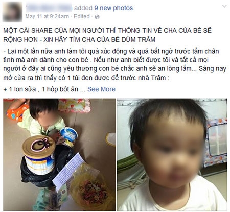 Trâm kêu gọi mọi người tích cực share để tìm thông tin về cha của đứa bé. |