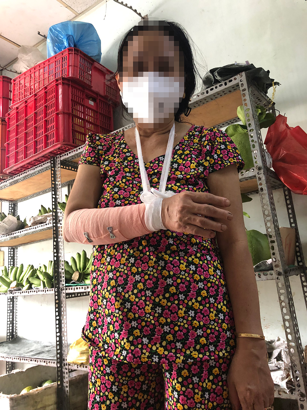 “Hai người đánh là người trong gia đình, gọi tôi bằng dì ruột. Họ một người đi cửa trước, một người đi cửa sau vô cớ tấn công tôi và chị tôi lúc đó đang bán trái cây” – bà H. nói.