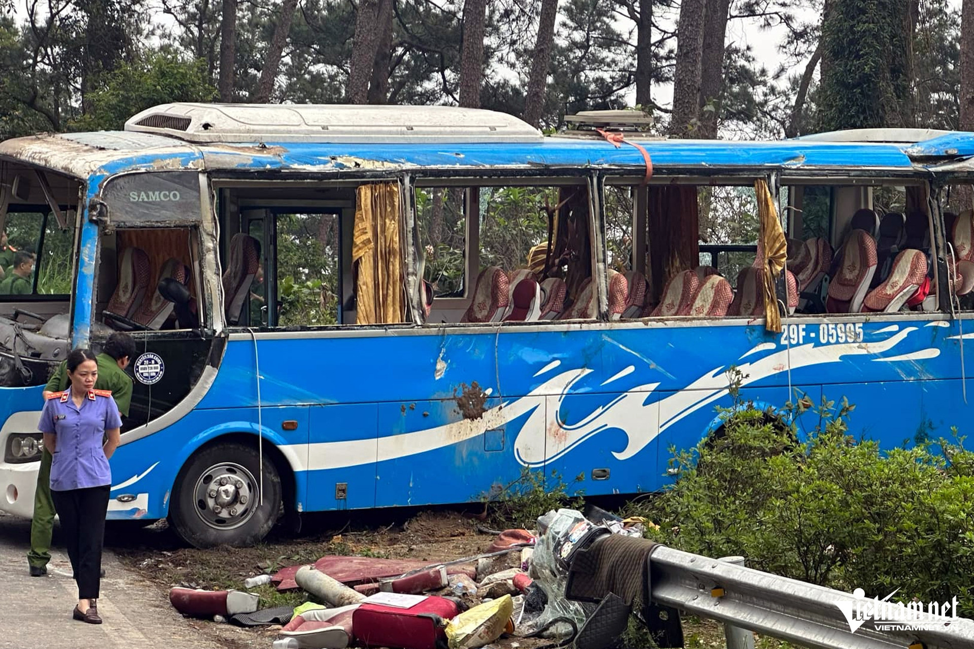 Thời điểm trên, tài xế Nguyễn Văn T. (41 tuổi) điều khiển ô tô khách mang biển kiểm soát 29F-059.XX di chuyển từ thị trấn Tam Đảo xuống bất ngờ bị mất phanh và lật nghiêng.