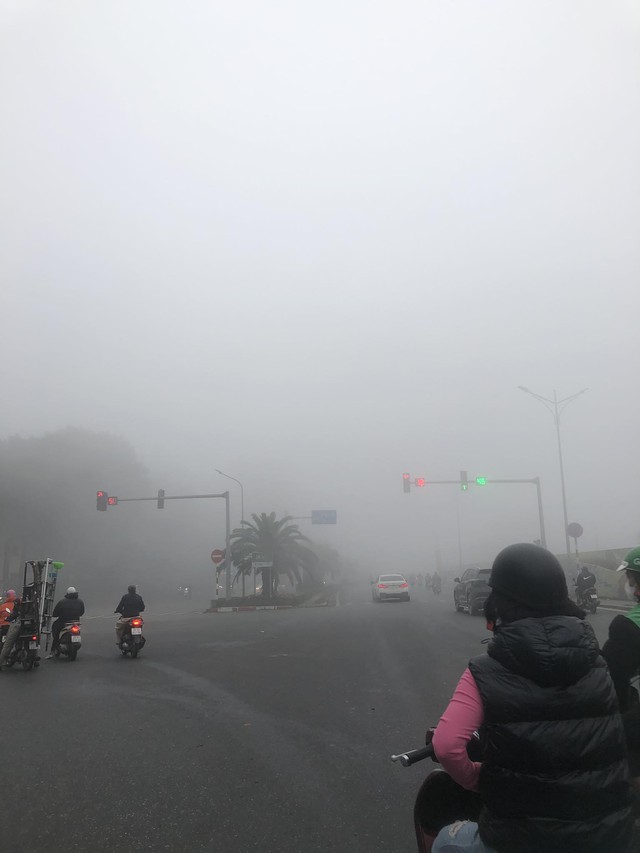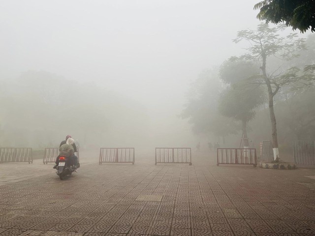 Ghi nhận sáng ngày 2/2, nhiều khu vực tại Hà Nội sáng nay có mưa phùn và sương mù dày đặc, che phủ nhiều toà nhà cao tầng, hạn chế tầm nhìn của người tham gia giao thông.