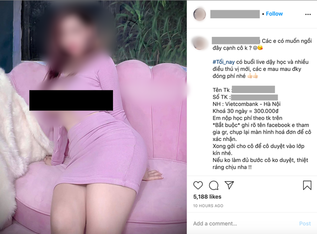 Đáng chú ý, kèm theo những hình ảnh gợi cảm của mình, cô Trang còn đăng thêm nội dung kêu gọi mọi người nộp tiền để được phê duyệt vào "lớp học" với tần suất dày đặc.