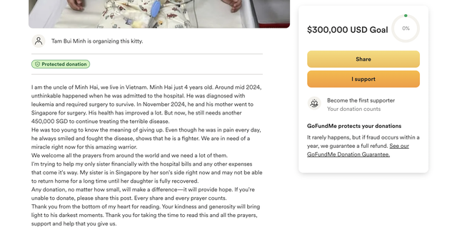 Đáng chú ý, cũng trên nền tảng này, người dùng mạng xã hội còn phát hiện một chiến dịch khác được mở để gây quỹ cho bé Bắp mang tên "Give Hope to M.H: Fund His Treatment" (Mang lại hy vọng cho M.H: Tài trợ cho việc điều trị của cậu bé). Chiến dịch được mở vào 4 ngày trước, đặt mục tiêu quy góp số tiền 300.000 USD (khoảng hơn 7,6 tỉ đồng). Người gây quỹ tự xưng là chú của bé Bắp, tên Tam Bui Minh, có địa chỉ tại Nevada, Califonia.