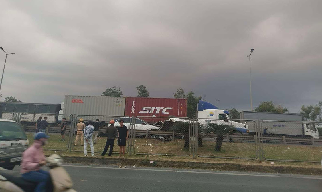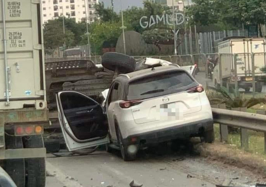 Thông tin ban đầu, tại thời điểm xảy ra tai nạn, xe ô tô Mazda di chuyển tốc độ cao đã húc vào xe bán tải ở phía trước (chưa rõ xe đang dừng hay di chuyển) trên làn khẩn cấp. Cú va chạm mạnh đúng vào thời điểm xe container di chuyển đến khiến chiếc xe bán tải bị lật nghiêng.