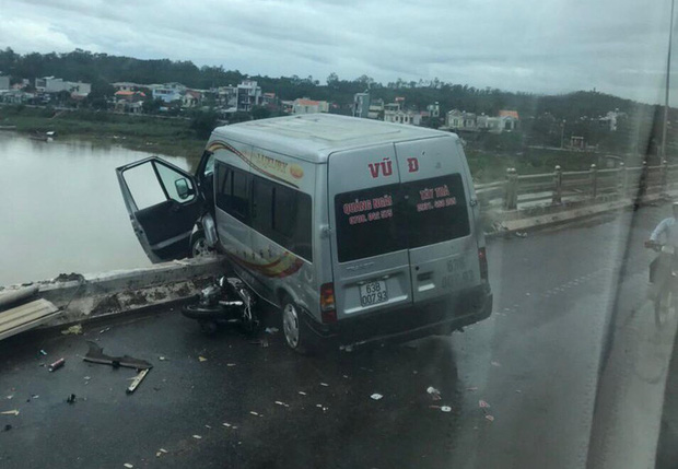 Tiếp đó, ôtô khách khách 16 chỗ chạy từ Bắc vào Nam (chưa rõ người điều khiển) tiếp tục tông vào một người chạy xe máy. Sau đó, xe khách này lao vào thành cầu Trà Khúc 2, suýt rơi xuống sông khiến nhiều người la hét, hoảng sợ.