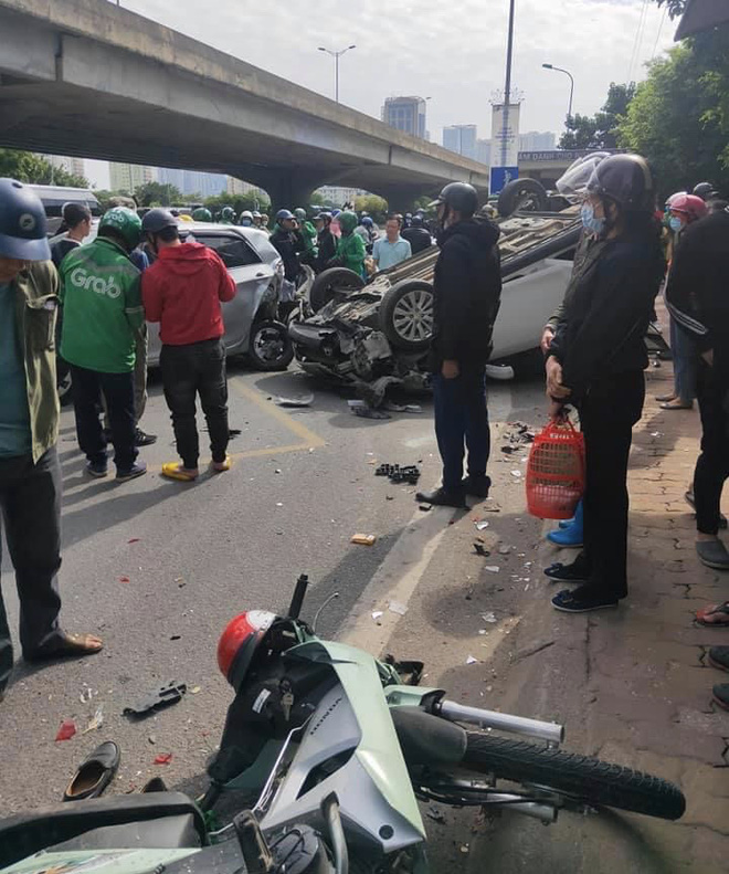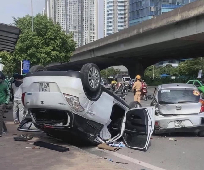 Sau cú va chạm trên, xe ô tô Suzuki Swift tiếp tục va chạm với xe taxi đang di chuyển mang BKS 30A – 69244 của tài xế Nguyễn Văn H. (34 tuổi, quê ở Hà Tĩnh). Lúc này, trên xe taxi có một hành khách.