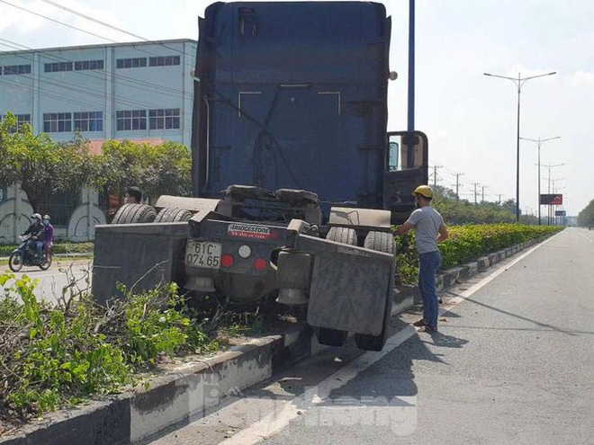 Lúc này, xe đầu kéo mang BKS:61C-074.65 chạy chiều ngược lại không kịp xử lý tiếp tục tông văng ô tô du lịch đi nhiều mét. Sau đó, xe đầu kéo lao lên dải phân cách.