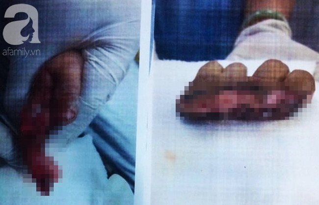 Nạn nhân là bé T.Đ.K. (1 tuổi, quê Đồng Tháp) được chuyển từ một bệnh viện chuyên khoa nhi ở TP.HCM trong tình trạng ngón 2, 3, 4, 5 tay trái bị đứt lìa, bàn tay trái bị đứt ngang ở giữa, đứt lìa đốt ngón trỏ bàn tay phải, đã được sơ cứu.