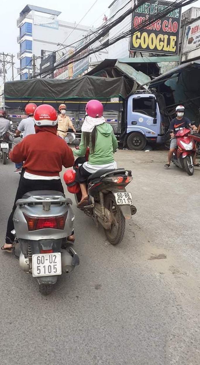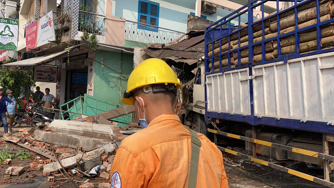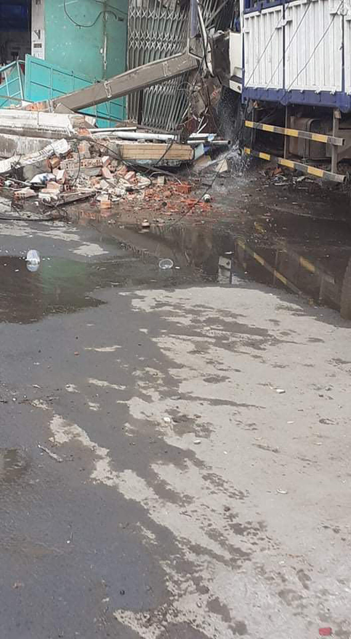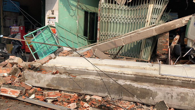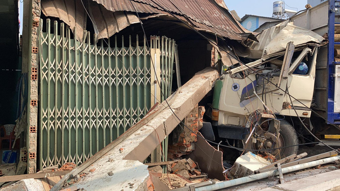 Khu vực xảy ra tai nạn là khu dân cư đông đúc. Tại hiện trường, 2 nhà dân bị tông sập đổ, ít nhất 4 xe máy bị càn nát.