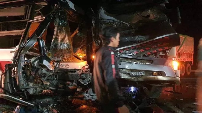 Sau cú tông, phần đầu 2 xe nát bét. Phụ xe khách là anh Trần Minh Thắng (25 tuổi), con trai chủ xe tử vong tại chỗ, tài xế xe khách và 2 hành khách bị thương. Một số hành khách vì quá sợ hãi nên ngất xỉu ngay trên xe.