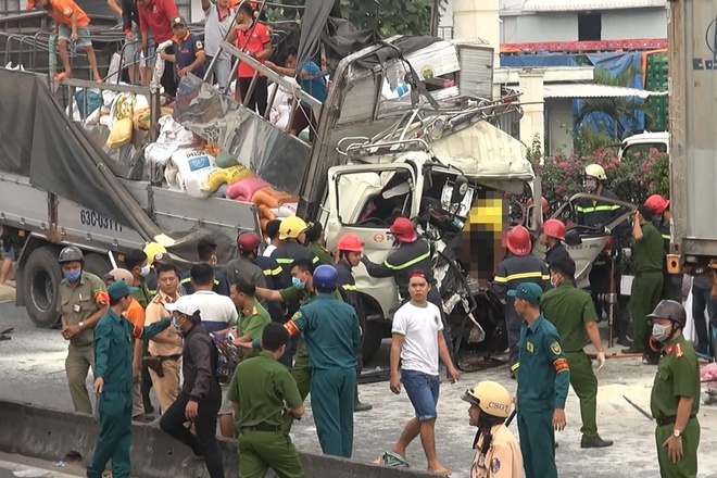 Khi qua khu vực phường Tân Hưng Thuận (quận 12), do không làm chủ tốc độ ôtô tải bất ngờ tông mạnh vào đuôi xe đầu kéo container biển kiểm soát tỉnh Tây Ninh chạy cùng chiều, do tài xế Trần Văn Lê (26 tuổi) lái.