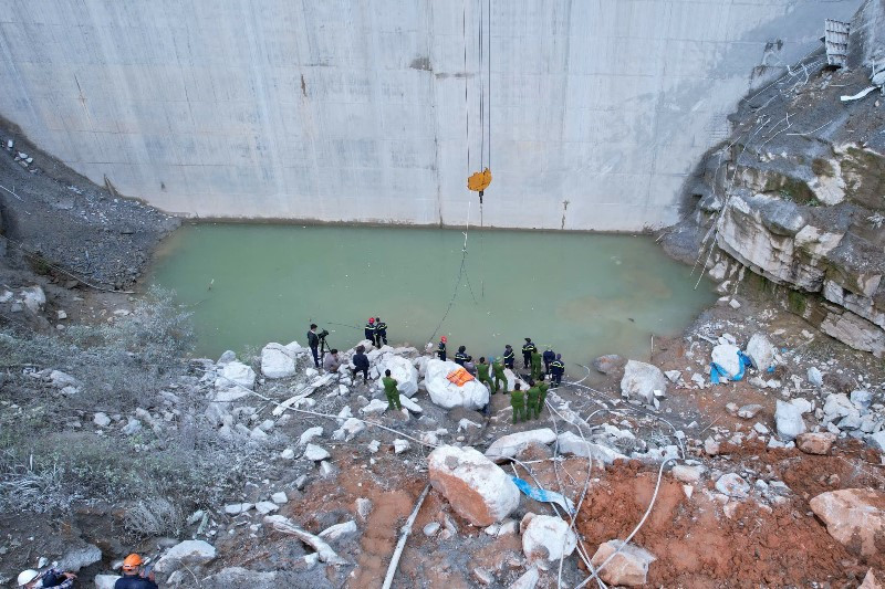 Lực lượng chức năng xác định, vị trí tìm kiếm 2 nạn nhân mất tích là một hố nước sâu ngay tại chân công trình. Nơi đây trước là lòng sông, quá trình thi công thủy điện đã xây đập, ngăn dòng tạo thành một hố nước có diện tích khoảng 200m2. Do lượng nước nhiều nên phương án được các lực lượng chức năng đặt ra là phải dùng máy bơm hút cạn nước để tìm kiếm 2 nạn nhân.