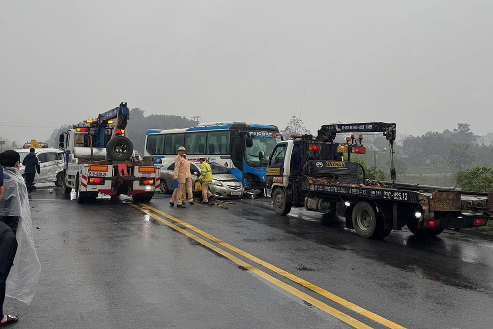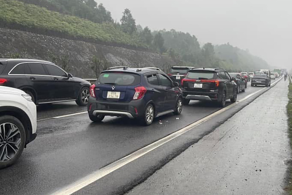 Cụ thể, ô tô con BKS 20A- 796.XX do anh N.T.N. (SN 1986, trú tại Cao Bằng) điều khiển, bất ngờ đâm vào dải hộ lan trên cao tốc. Tiếp đó, ô tô con BKS 24A- 150.XX do ông N.V.H. (SN 1970, trú tại Lào Cai) đi phía sau đã không phanh kịp nên va chạm với ô tô 20A- 796.XX.