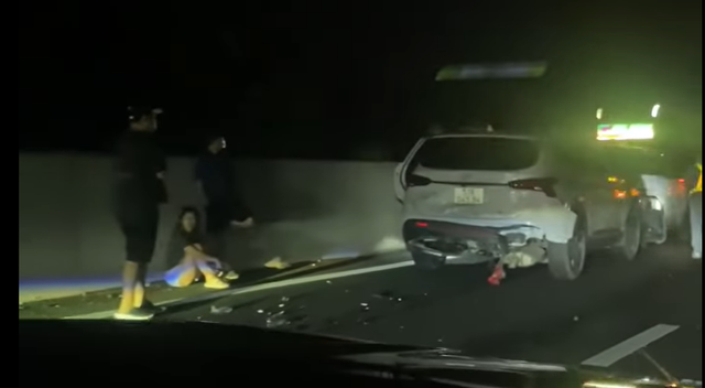 Vụ tai nạn khiến nhiều phương tiện bị hư hỏng, mảnh vỡ văng ra đường. Ảnh hưởng của tai nạn khiến giao thông trên cao tốc bị ùn tắc.