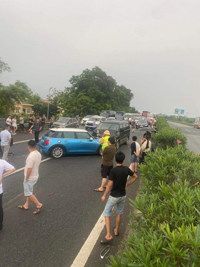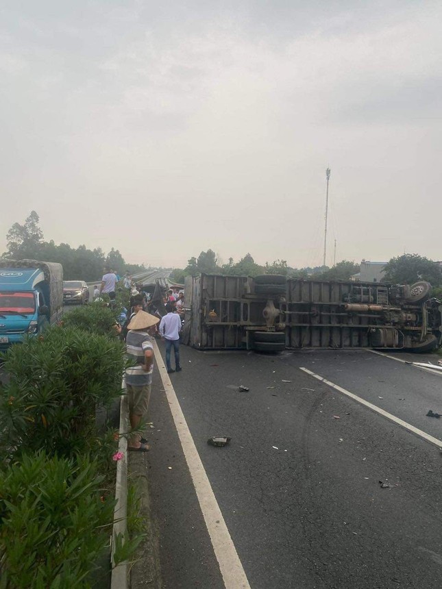 Vào thời điểm trên, 6 ô tô, trong đó có xe tải và xe con xảy ra va chạm liên hoàn. Vụ việc khiến cả 6 phương tiện hư hỏng. Trong đó, một xe tải chở hàng bị lật chắn ngang đường.