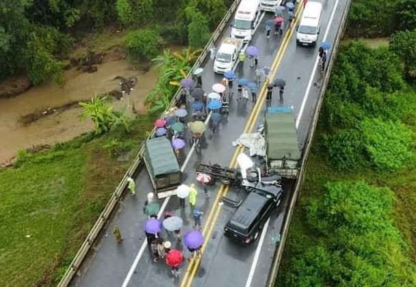Tại hiện trường, 3 xe ô tô nói trên bị hư hỏng, trong đó, ô tô tải BKS 88C - 247.XX bị gãy rời phần thùng xe, chắn ngang đường.