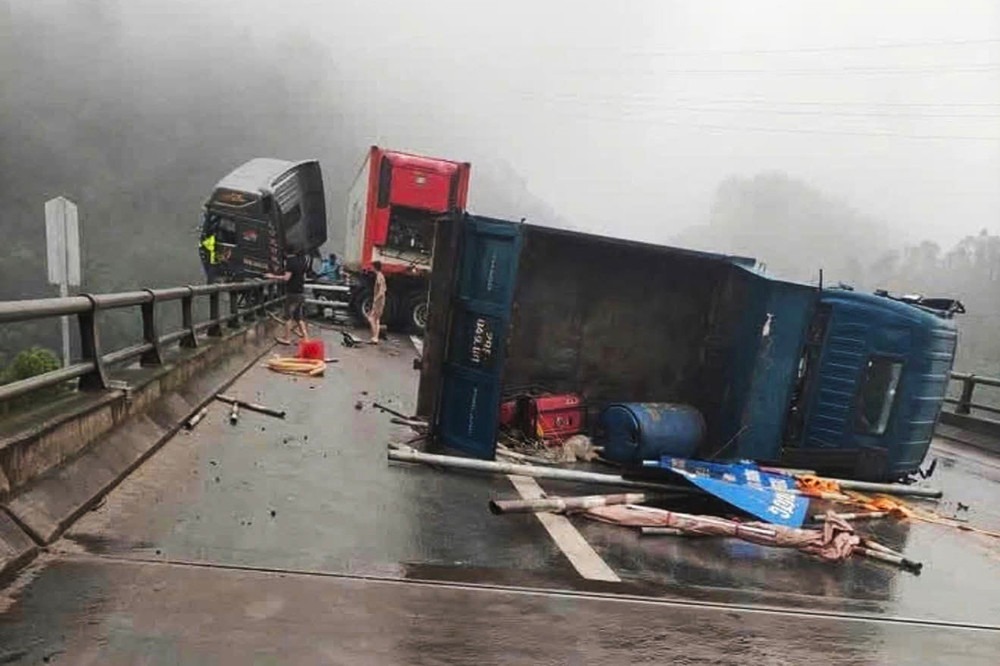 31/05/2025 21:00Tai nạn liên hoàn trên cao tốc Nội Bài - Lào Cai: Xe đầu kéo lơ lửng trên thành cầu