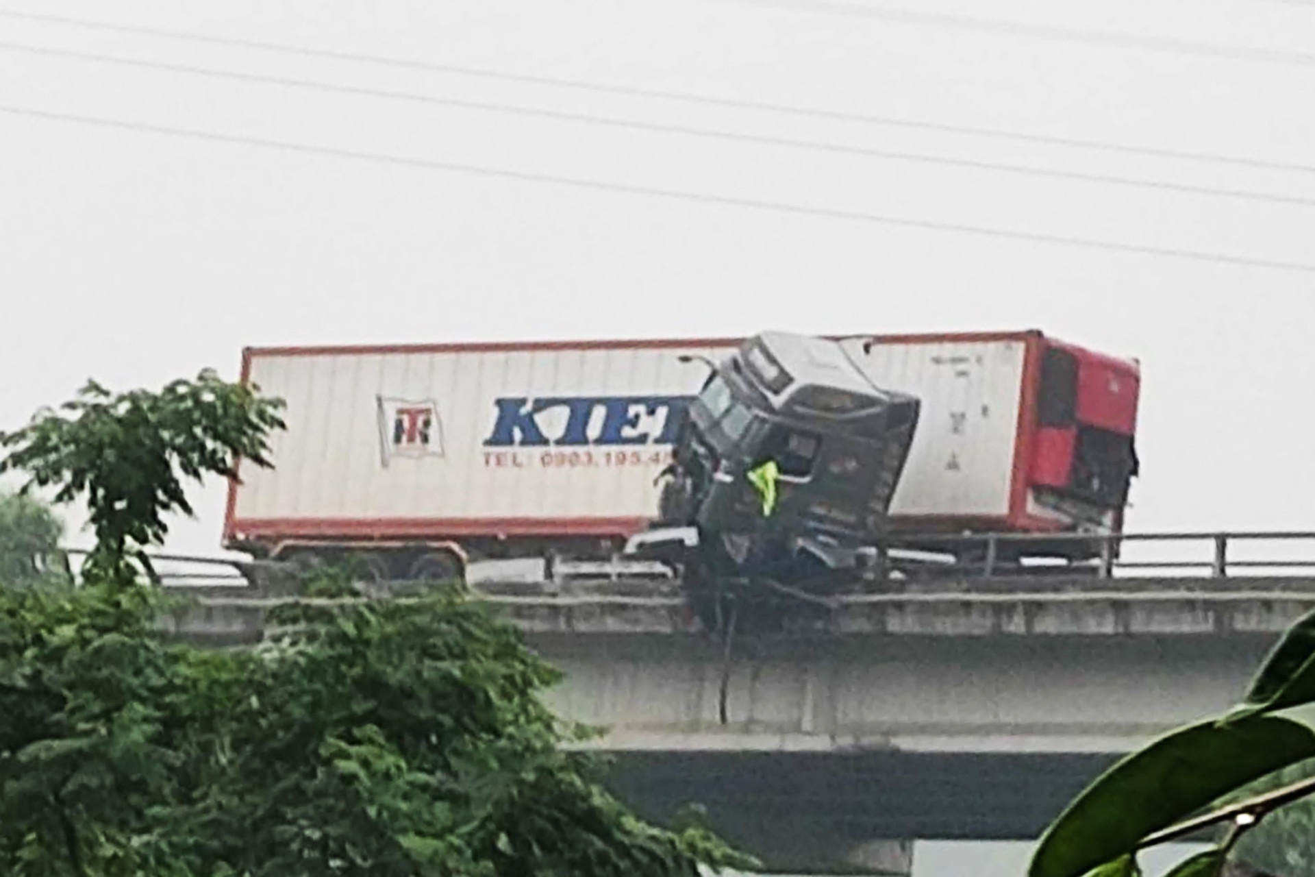 Theo thông tin ban đầu từ Đội 1 Cục CSGT (Bộ Công an), vụ tai nạn xảy ra vào khoảng 7h20 sáng cùng ngày, giữa một ô tô đầu kéo (chưa xác định danh tính tài xế và biển kiểm soát) và một ô tô tải. Cú va chạm mạnh đã khiến ô tô tải bị lật nghiêng ra giữa đường cao tốc. Đáng chú ý, ô tô đầu kéo mang BKS 38H-009.XX đã đâm đổ lan can cầu, phần cabin treo lơ lửng trên thành cầu, gây cảnh tượng thót tim. Một phần hộ lan cầu cũng bị hư hỏng nặng sau vụ tai nạn.